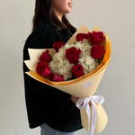 Red rose - 9 шт. Wrapping - 1 шт. white hydrangea - 2 шт. подарочный пакет - 1 шт.
