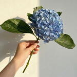 Гортензия Blue демонстрирует потрясающий одиночный стебель с пышными, полными соцветиями насыщенного сапфирового оттенка, идеально подходящий для придания изысканности и очарования любой цветочной композиции или в качестве самостоятельного акцентного элемента. Её крупная округлая головка соцветия сразу привлекает внимание, а тёмно-зелёные листья подчёркивают её природную красоту. Эта гортензия идеальна для свадеб, домашнего декора или в качестве подарка, предлагая вне времени элегантность с современным акцентом. Рекомендации по уходу Поместите гортензию в чистую вазу, заполненную свежей прохладной водой, сразу после получения. Обрежьте стебель под углом 45 градусов под проточной водой, чтобы улучшить гидратацию и предотвратить попадание пузырьков воздуха, блокирующих поглощение воды. Меняйте воду ежедневно и удаляйте опущенные в воду листья, чтобы избежать размножения бактерий. Держите гортензию в прохладном месте, подальше от прямых солнечных лучей, источников тепла и сквозняков. Если соцветие начнёт вянуть, погрузите всю головку цветка в прохладную воду на 30 минут, чтобы помочь ей восстановить гидратацию и свежесть.