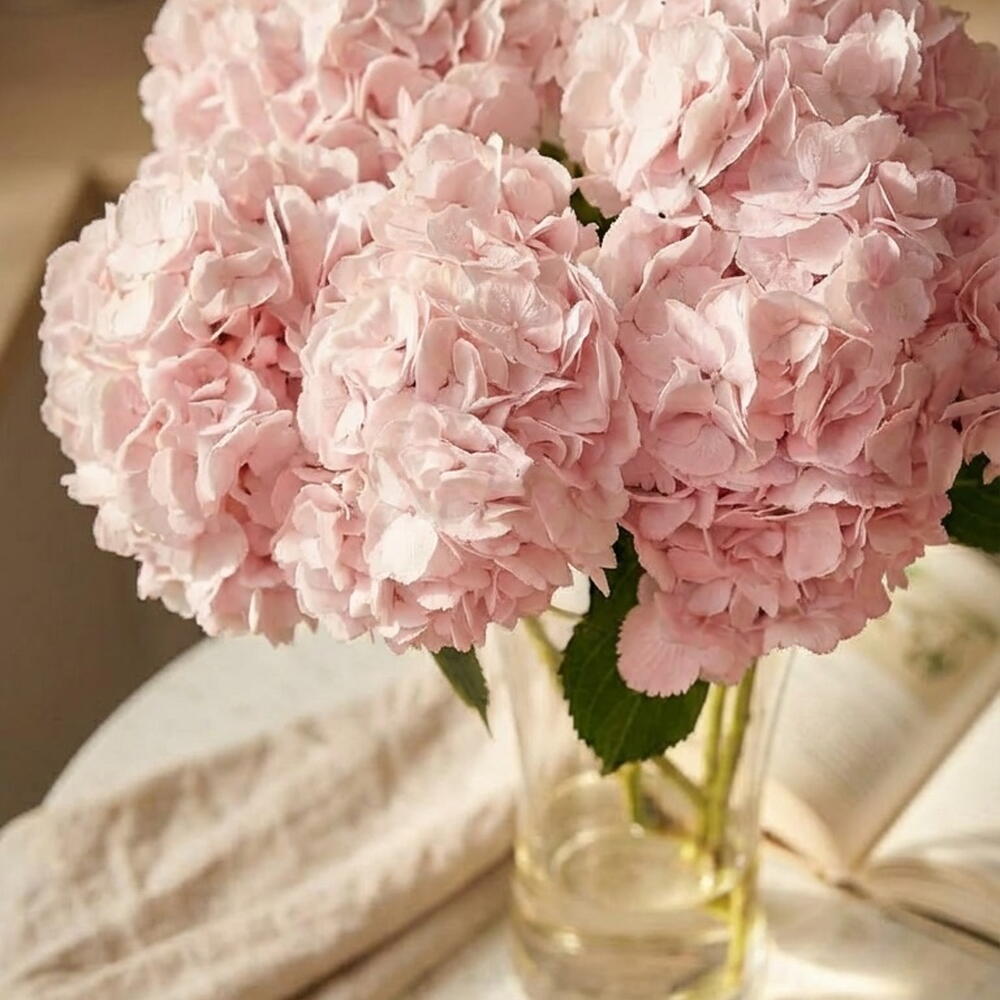 Pink hydrangeas in the interior are the epitome of delicate luxury and coziness. Their lush inflorescences, resembling airy soufflés, shimmer with all the hues of sunset, from a subtle blush to the rich tone of ripe raspberries. They soften the space, filling it with warmth, romantic light, and a sense of serene tranquility. They are the perfect accent to create an atmosphere of harmony and exquisite comfort.