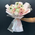 rose - 3 шт. спери роза - 3 шт. гортензия - 1 шт. гарбара - 6 шт. гвоздика в букете - 5 шт.