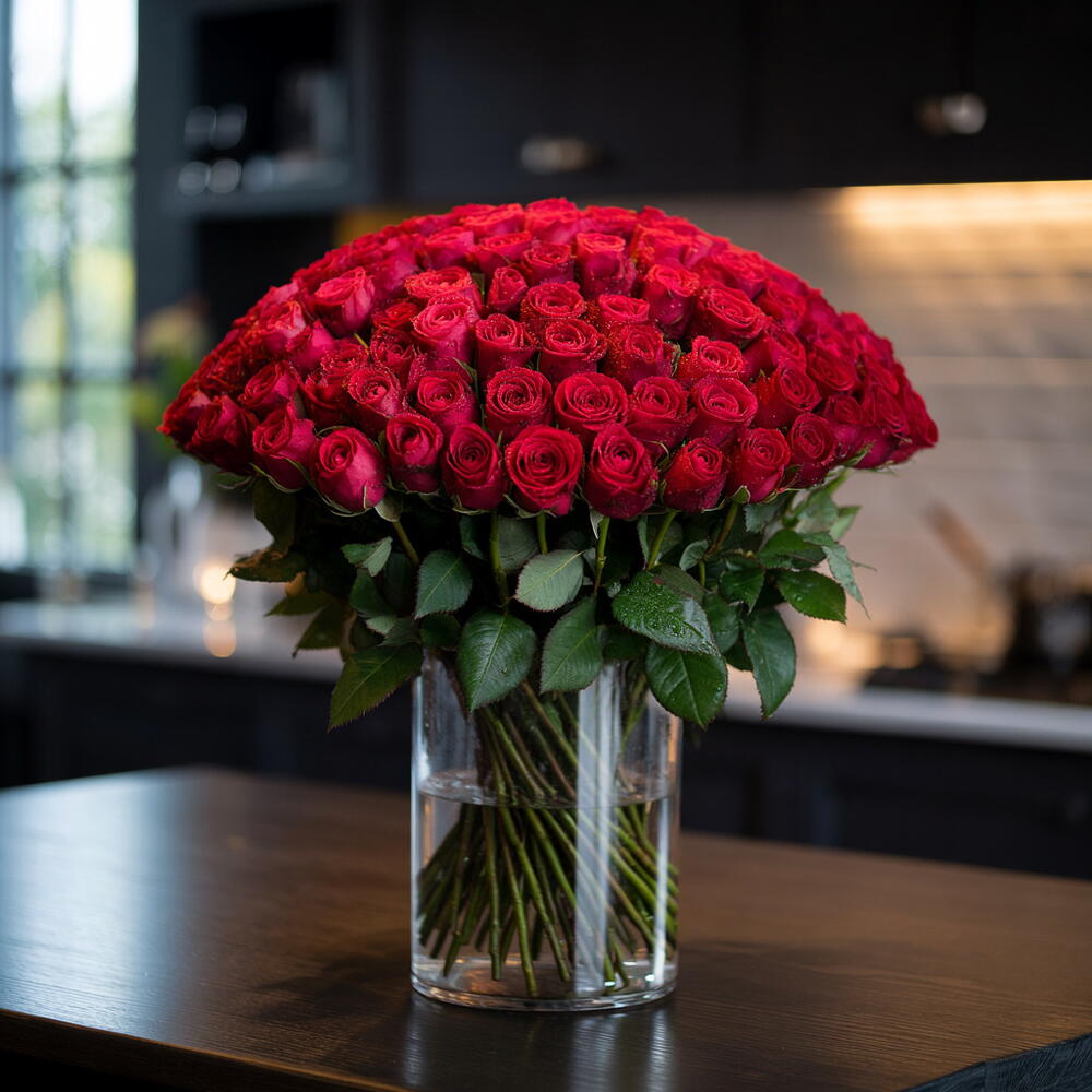 Излучайте всепоглощающую нежность с этим потрясающим моно-букетом. Изысканно оформленный, он содержит сто отобранных вручную роз, каждая из которых олицетворяет эмоцию, делая букет изысканным символом вашей неувядающей любви. Приготовьтесь покорять сердца этой великолепной цветочной композицией.