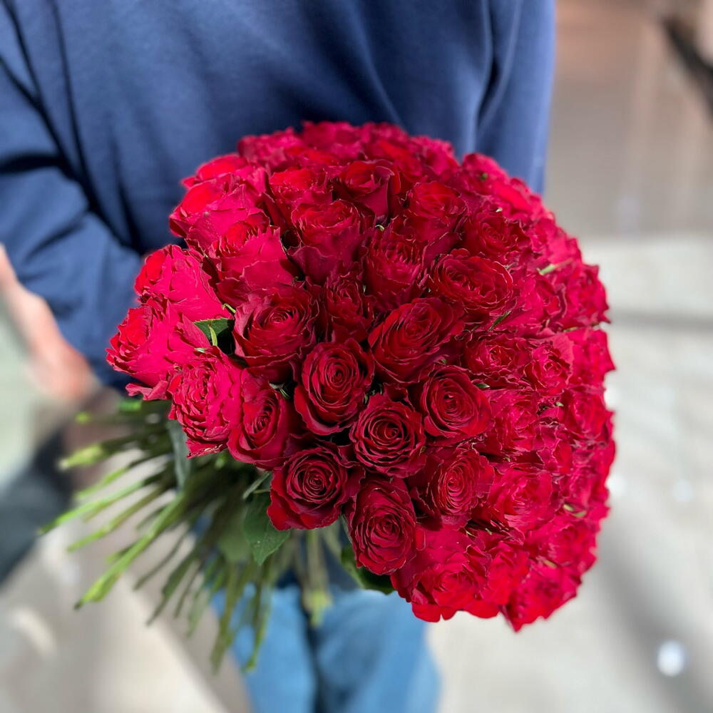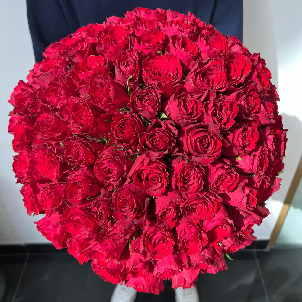 Красные розы считаются символом любви и страсти, что делает их популярным выбором на День святого Валентина, годовщины и другие романтические события. Размер букета довольно большой и идеально подходит для торжественного романтического жеста или особого случая, например, предложения руки и сердца или знаменательной годовщины. Белая упаковка добавит нотку чистоты. Выразите свои чувства любимым с помощью этого чудесного жеста из прекрасных красных цветов. В состав букета входят: • Красные розы: 51 Черная упаковочная бумага Примечание: Цвета могут меняться в зависимости от сезона. Советы по уходу: Вид цветов - Регулярно доливайте воду. - Полностью меняйте воду каждые 2-3 дня. - Обрезайте стебли цветов не менее чем на 1,5 см перед тем, как поставить их в вазу, и каждый раз при смене воды. - Держите цветы вдали от источников тепла и яркого света. - Не ставьте цветы рядом со спелыми фруктами и овощами, особенно бананами и яблоками. Примечание: При соблюдении вышеуказанных рекомендаций по уходу и хорошем уходе цветы могут стоять до 7 дней. Цвет цветов может меняться в зависимости от сезона.