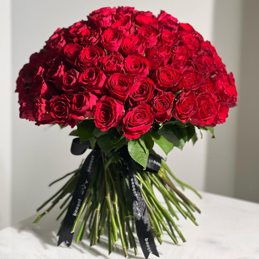 премиальная красная роза - 61 шт. черная лента - 5 шт.