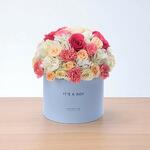 Искусно оформленная в большой премиальной круглой коробке с радостной надписью «Это мальчик», эта цветочная коробка — идеальный подарок, чтобы поздравить гордых новоиспечённых родителей и поприветствовать их маленькое чудо с красотой и изяществом.