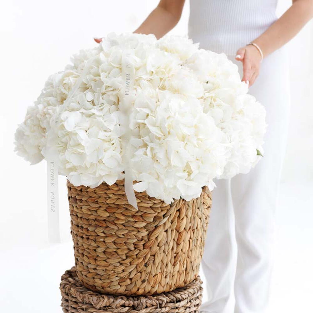 Облако из слоновой кости: большая корзина белых гортензий