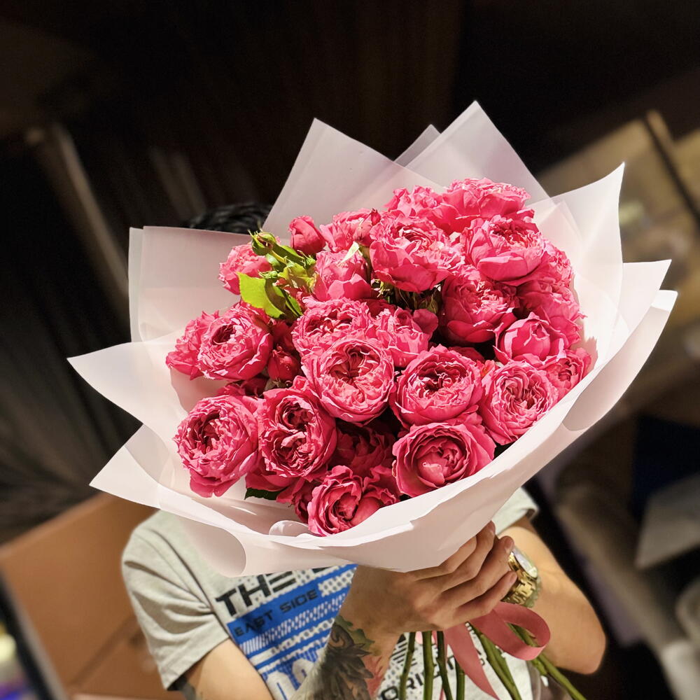 Julieta пионовидные спрей-розы фуксия цветущий букет в премиальной упаковке