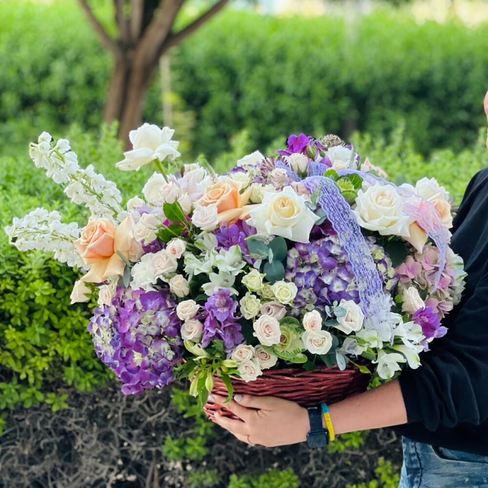 Veronica - 5 шт. Eucalyptus - 10 шт. Spray rose - 25 шт. Hydrangea - 8 шт. Alstroemeria - 10 шт. delphinium - 2 шт. одна роза - 25 шт. ohara rose - 10 шт.