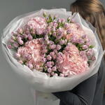 Букет из лавандовых спрей-роз и розовых гортензий
