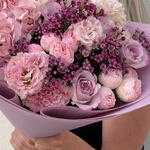 Eustoma - 3 шт. Hydrangea - 1 шт. Wax flower - 4 шт. rose - 4 шт. mansfield park - 4 шт.