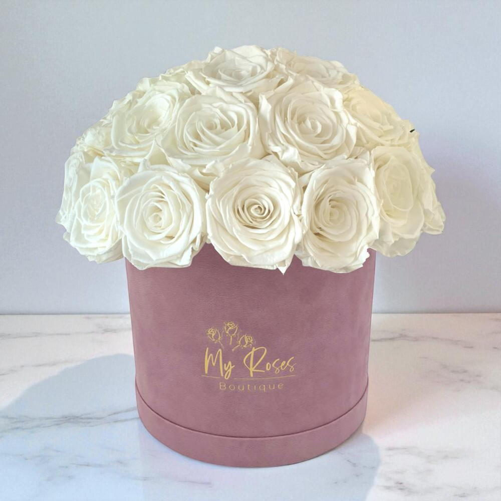 white roses - 36 шт. лиловая бархатная коробка - 1 шт.