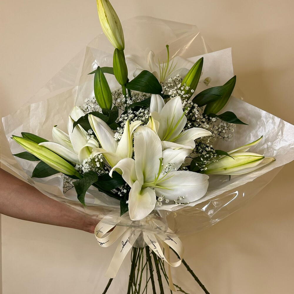lily white - 5 шт. gypsophilia - 3 шт.