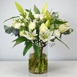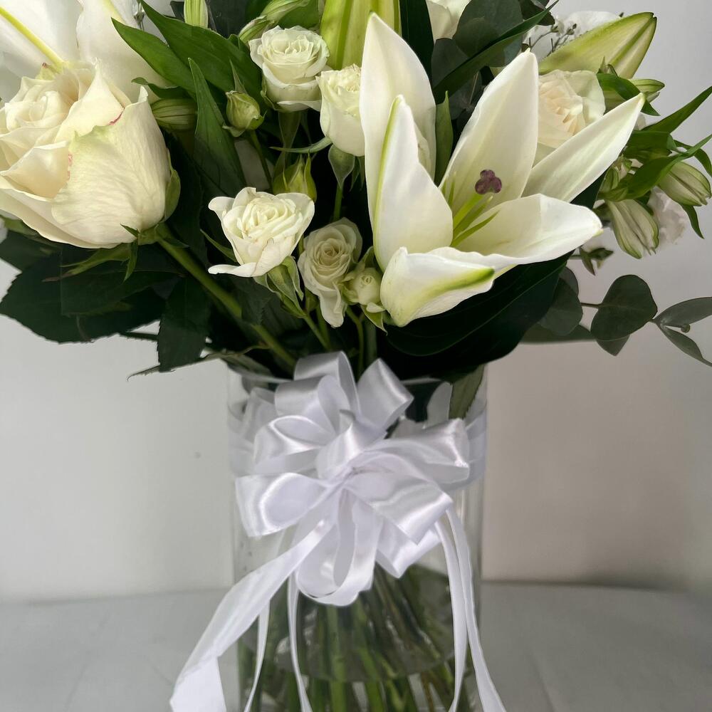 Подписка на вазу «Лилии и розы» Классическая, безупречная и неподвластная времени — доставка еженедельно, ежемесячно или круглый год. Пусть безмятежная красота вазы «Лилии и розы» наполнит ваше пространство элегантностью и спокойствием. Эта белоснежная композиция состоит из 8 белых лилий, 10 белых роз, 3 белых кустовых роз, 5 белых гвоздик и 3 белых альстромерий, искусно расположенных в прозрачной вазе, создавая изящное выражение чистоты, покоя и вневременного стиля. Эта композиция идеально подходит для дома, офиса, приема гостей или в качестве душевного подарка, наполняя каждый уголок тихой красотой. В тарифах с подпиской цветовую гамму можно настроить в соответствии с вашими предпочтениями или особыми случаями. Как это работает: • Разовая покупка: заплатите один раз за одну композицию в вазе — идеально подходит для значимых подарков или особых случаев. • Еженедельная подписка: оплачивайте еженедельно, и мы доставим вам новую композицию прямо к двери. Отменить подписку можно в любое время. • Ежемесячная подписка: оплата раз в месяц за 4 элегантные цветочные композиции. Гибкая возможность приостановки в любое время. • 6-месячная подписка: оплата авансом за шесть месяцев — четыре свежие композиции в месяц. Экономьте больше! • Годовая подписка: оплата авансом за целый год — 50 прекрасных цветочных композиций будут доставлены в течение года. Лучшее соотношение цены и качества, а также специальный подарок при первой доставке! Ваша подписка включает: ✔️ Премиальные сезонные цветы в стильной многоразовой вазе. ✔️ Возможность выбора цветовых схем для тарифных планов. Прозрачное ценообразование: • Недельная подписка: оплата 400 дирхамов ОАЭ за неделю до доставки. • Ежемесячная подписка: оплата 1400 дирхамов ОАЭ в месяц за 4 композиции. • 6-месячная подписка: оплата авансом 8000 дирхамов ОАЭ за 24 композиции. Подписка сохранит ваше пространство свежим, изящным и уютным круглый год. Спасибо, что позволяете нам наполнять ваши повседневные моменты красотой! Пожалуйста, внимательно выберите тарифный план перед оформлением: разовый / еженедельный / ежемесячный / полугодовой / годовой. Все цены отображаются в соответствии с вашим выбором. Если вам нужна помощь, обращайтесь к нашей команде в любое время!