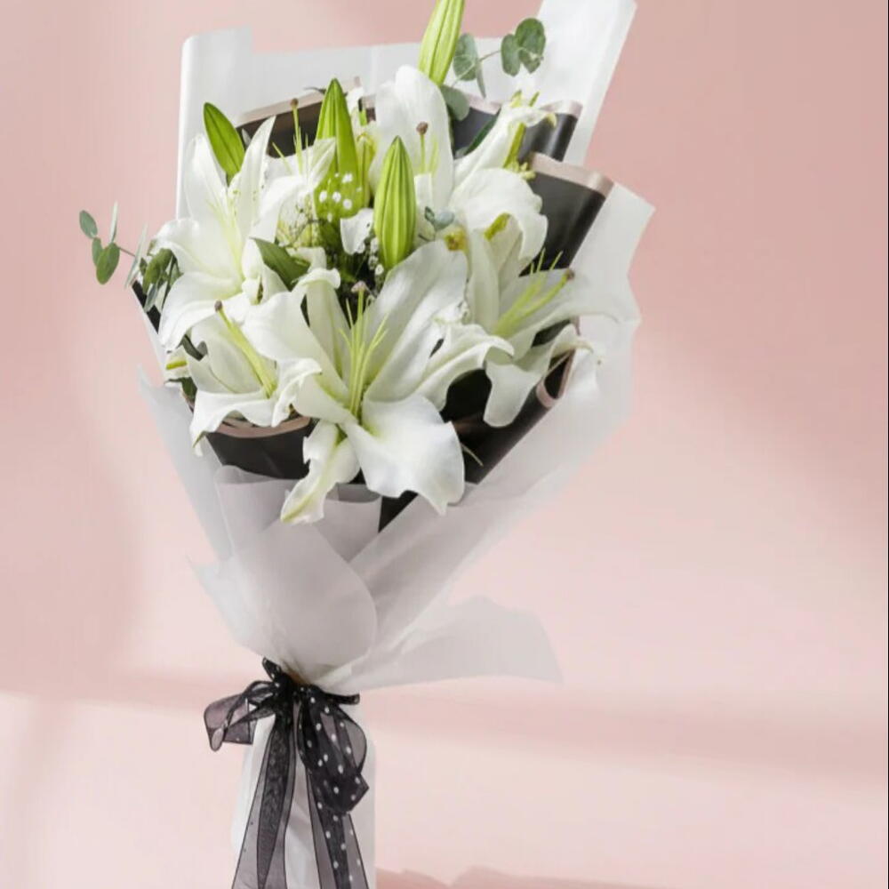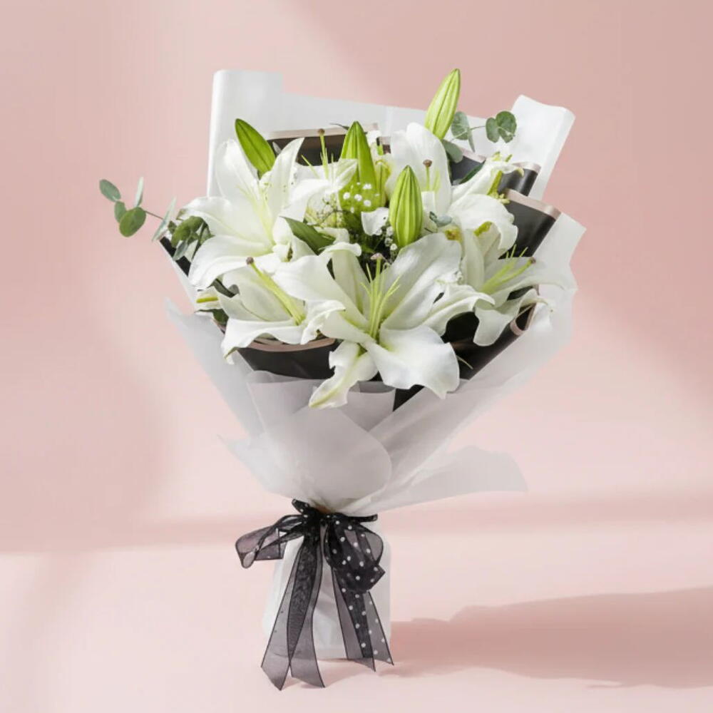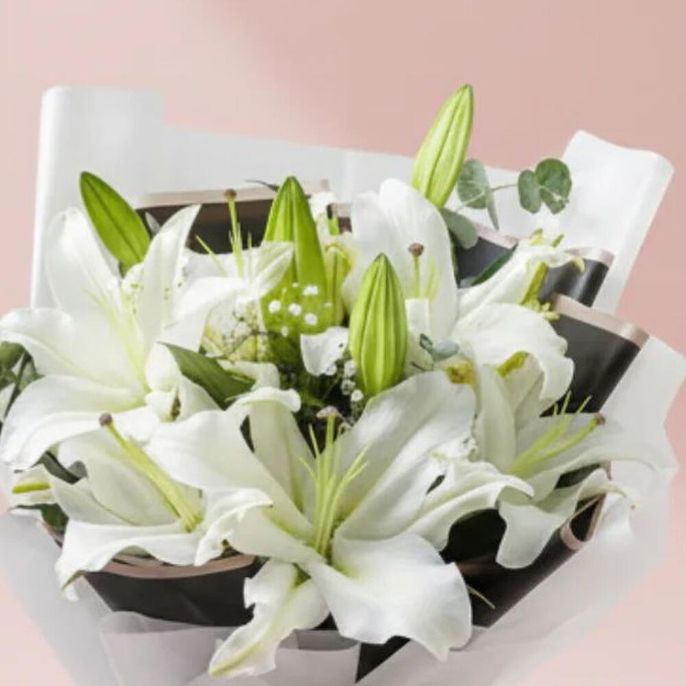 Gypsophila - 4 шт. стебли белых лилий - 3 шт.