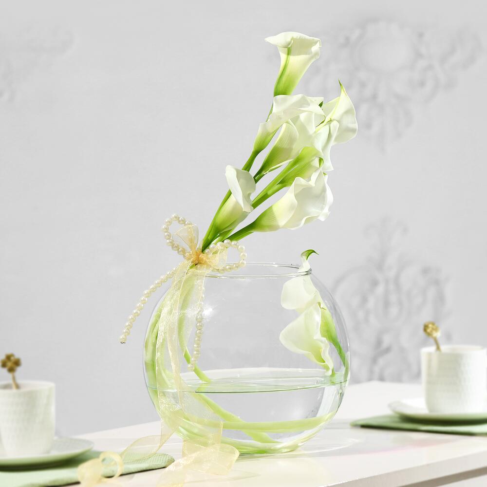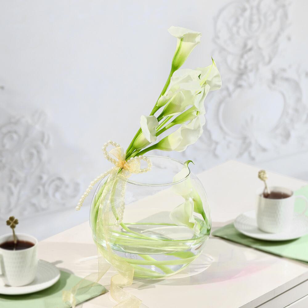 Ощутите воплощение роскоши с этой цветочной композицией и произведите впечатление — утончённое и незабываемое. Деликатно оформленная в прозрачной стеклянной вазе-шаре, эта композиция раскрывает элегантность каждого безупречного цветка.