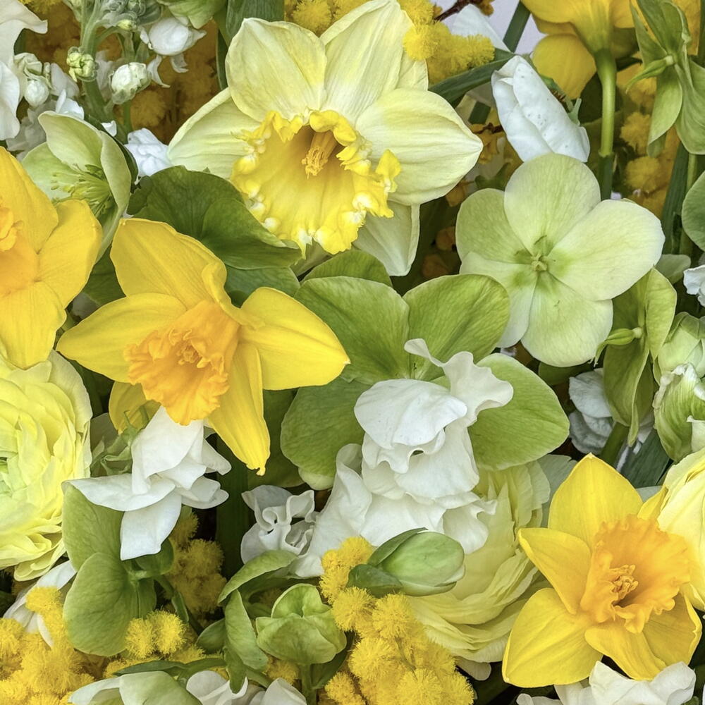 A bright flower basket for March 8th, consisting of mimosa, daffodils, tulips, and ranunculuses, blends sunny shades of yellow and white, creating the atmosphere of a spring celebration. The perfect gift for your most beloved women! Includes tulip, ranunculus, matthiola, mimosa, daffodil, forsythia, helleborus, lathyrus. The set comes with a personalized card, care instructions, flower fertilizer. *Flower delivery today Perfect for: - a gift for her; - weddings or anniversaries; - birthday; - perfect dates; - gift add-ons; - International Womens Day; - gifts with no occasion; - VIP events or luxury floral surprise.