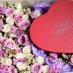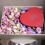 wax - 2 шт. statice pink - 2 шт. белые спрей-розы - 5 шт. purple spray roses - 4 шт. подарочная коробка ahmad al maghribi - 1 шт. Ahmed Al Maghribi набор женских духов Little Hearts 50 мл - 2 шт.