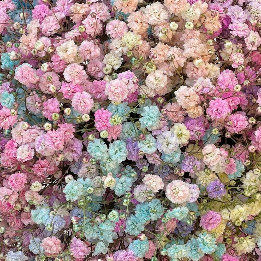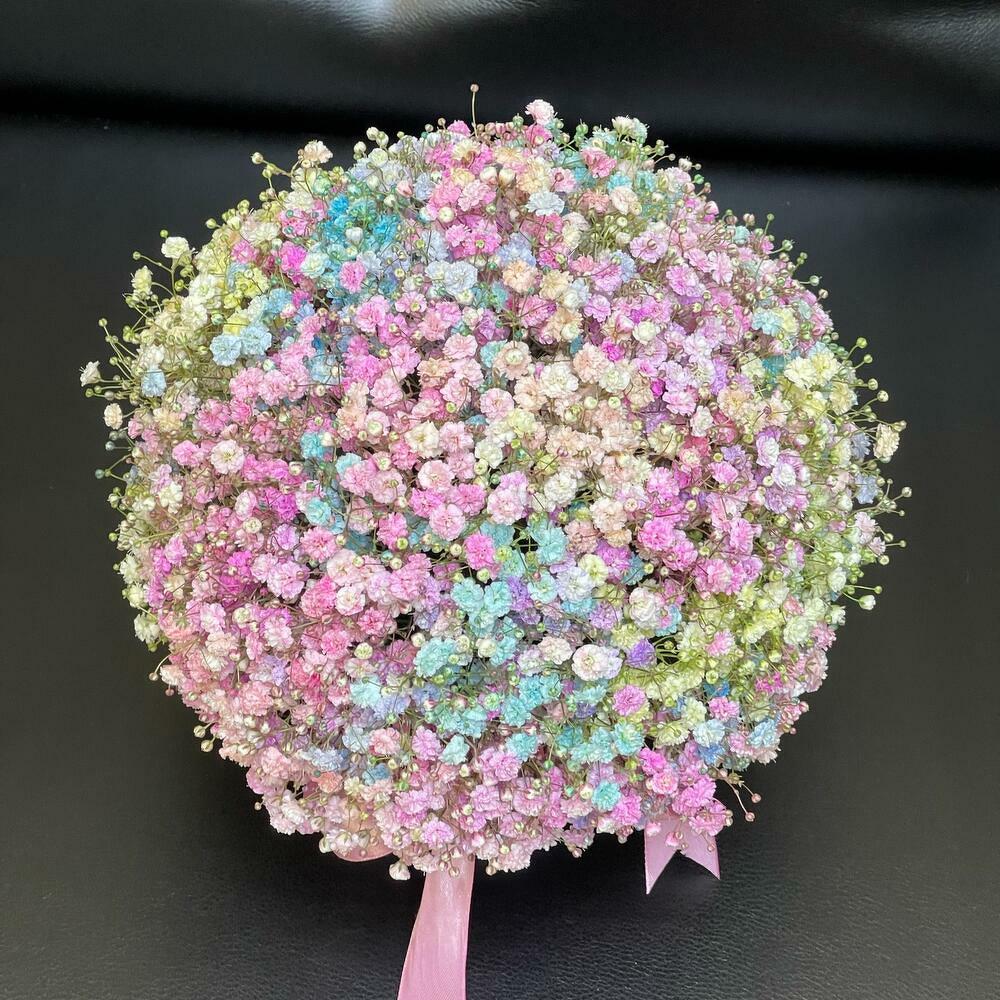 Это безумие из гипсофилы заставляет девичье сердце замирать. Для радуги не нужен дождь! Выбери свою радугу в подарок, не жди плохой погоды! Кстати, гипсофила — самый долговечный цветок: со временем она превращается в сухоцвет, который от этого не становится менее привлекательным. 🦄