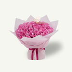 Букет, собранный вручную, из 55 нежно-розовых роз, украшенный изящной бабочкой, аккуратно оформленный в мягкую розовую упаковку для сказочного и очаровательного завершения.