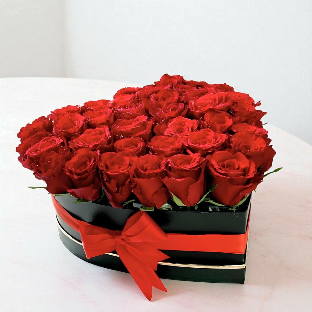 Коробка в форме сердца с красными розами