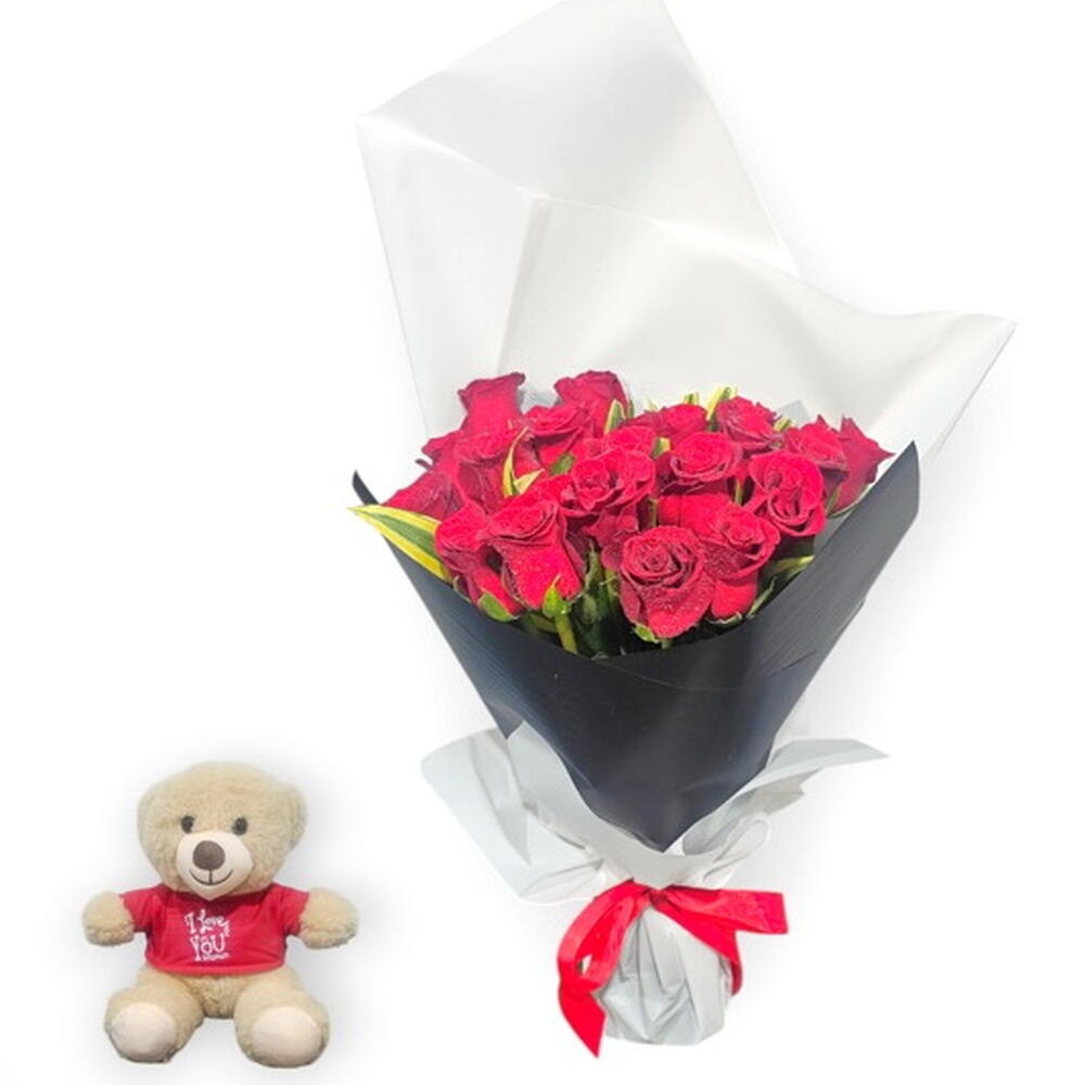 Teddy bear - 1 шт. red roses - 21 шт.