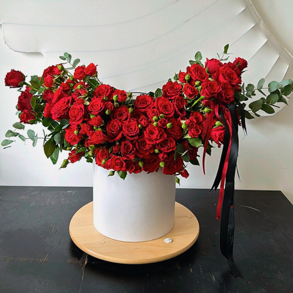 Red rose - 40 шт. букет роз в брызгах - 10 шт. листья эвкалипта - 5 шт.