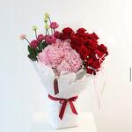 Red rose - 10 шт. hydrangea pink - 3 шт. pink spray rose - 5 шт. white spray rose - 5 шт.