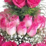 gypsophila white - 5 шт. зелёные наполнители - 5 шт. светло-розовые розы - 15 шт. горячие розовые розы - 15 шт.