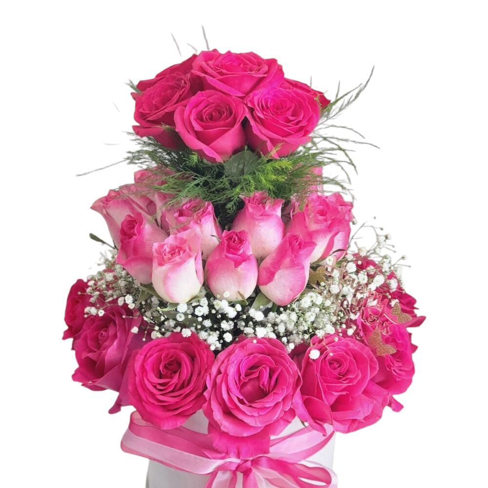 Слои любви и элегантности* Эта восхитительная композиция из ярко-розовых роз в сочетании с нежной гипсофилой и пышной зеленью создана, чтобы впечатлять. Элегантно уложенная в стильную белую шляпную коробку и перевязанная нежной розовой лентой, это выражение любви, восхищения и красоты. Будь то день рождения, годовщина или просто так, этот букет излучает очарование и делает каждый момент незабываемым