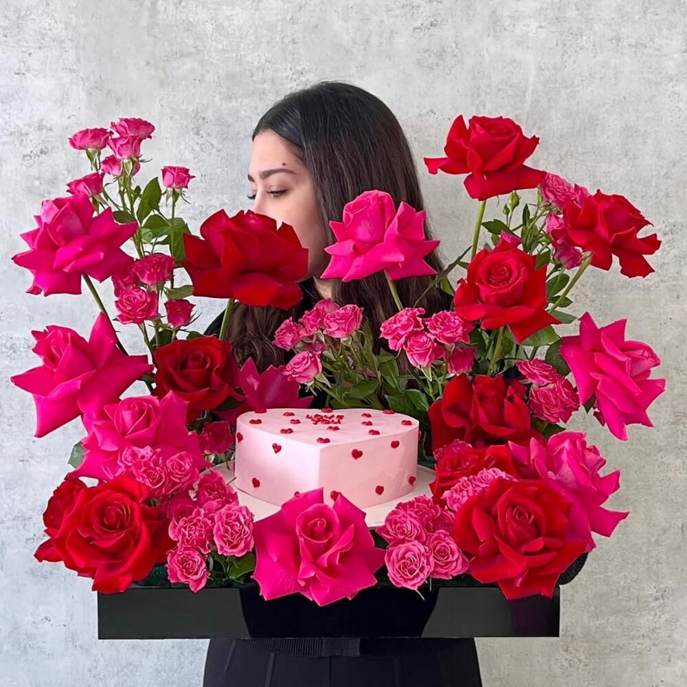 Ищете идеальный подарок на день рождения для неё? Наш цветочный поднос с тортом «Love You Heart» — это идеальное романтическое сочетание цветов и торта, созданное для выражения любви, нежности и роскоши в одной прекрасной композиции. Этот элегантный подарок представляет собой розовый торт в форме сердца с красными сердечками и надписью «Love You» — идеальный романтический торт для дня рождения, годовщины или Дня святого Валентина. Торт искусно расположен на чёрном роскошном подносе и окружён 10 красными розами, 10 розовыми розами и 40 кустовыми розами, тщательно отобранными по принципу свежести и красоты. Независимо от того, делаете ли вы сюрприз на день рождения жене, девушке или невесте, эта потрясающая подарочная коробка с розами и тортом сделает каждый момент незабываемым. Это также продуманный выбор для празднования годовщины, любовных сюрпризов, подарков для пары или доставки в тот же день в Дубае, Шардже и Аджмане. Каждый цветок тщательно составлен компанией Majd Flowers UAE, чтобы создать роскошную романтическую подарочную коробку, которая будет прекрасно выглядеть на фотографиях и доставлена к вашему порогу свежим.