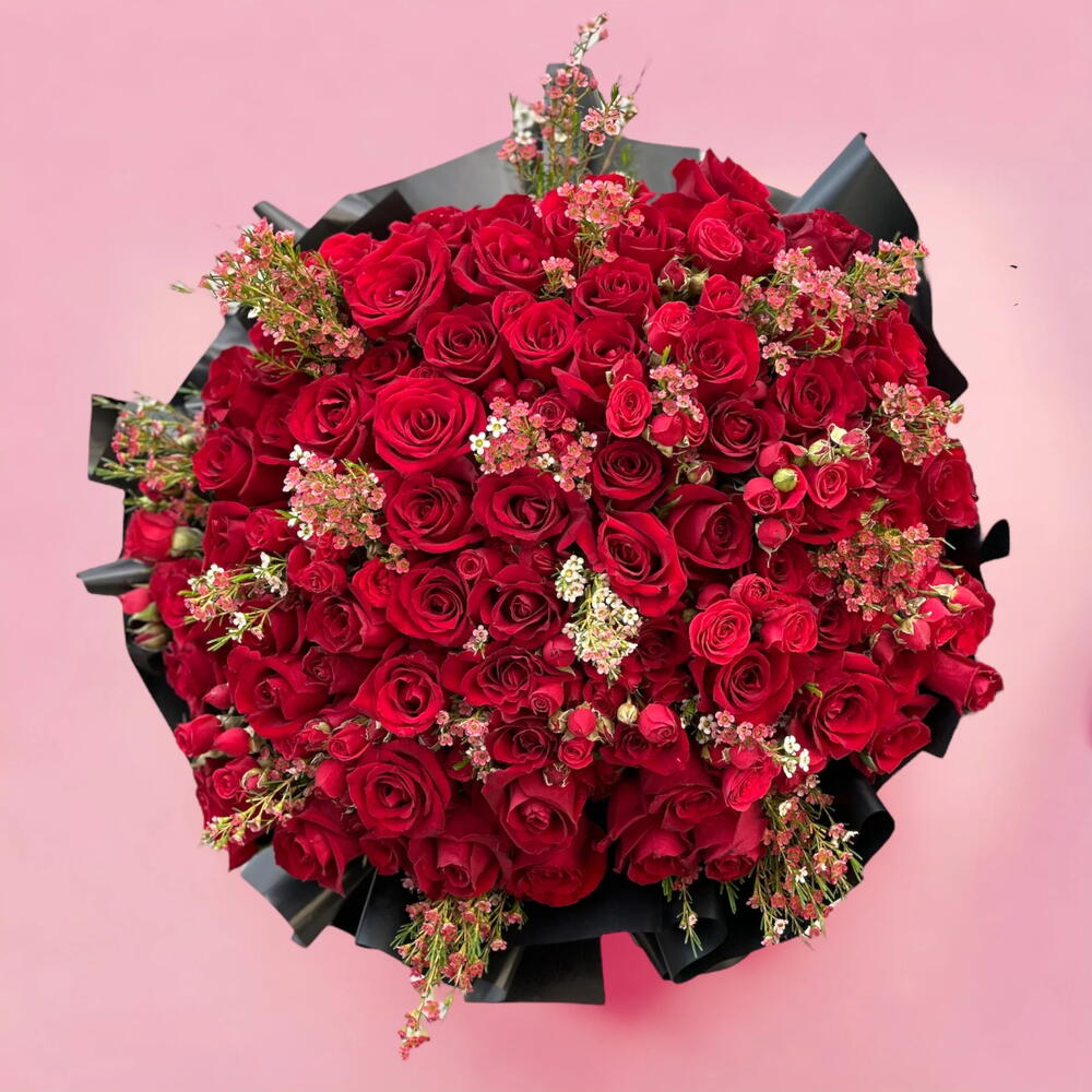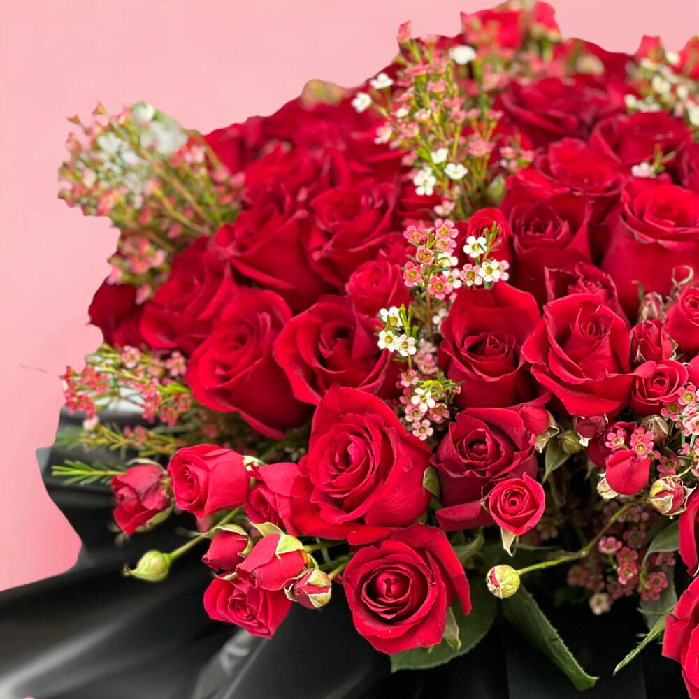 Представляем букет Lucky Girl — захватывающую смесь страсти и элегантности, в которой 70 ярких красных роз, 20 очаровательных садовых роз и 10 нежных восковых цветов. Эта изысканная композиция является символом глубокой любви и удачи, тщательно выполненная, чтобы пленять и восхищать. Благодаря своей роскошной подаче букет Lucky Girl — идеальный подарок для выражения глубоких чувств по особым случаям. Сделайте заявление, которое превосходит слова, с этим вечным и незабываемым цветочным шедевром. Сделайте этот День святого Валентина незабываемым с букетом Lucky Girl от магазина Blush and Petals Flower Shop.