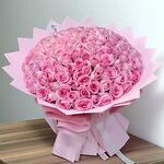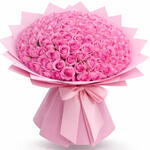 Потрясающая композиция из 101 свежей розы нежно-розового цвета, красиво упакованная в мягкую розовую бумагу — идеально подходит для свадеб, юбилеев, дней рождения или для роскошного подарка.