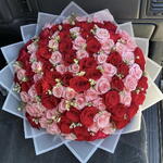 Роскошный букет-микс из 100 красных и розовых роз