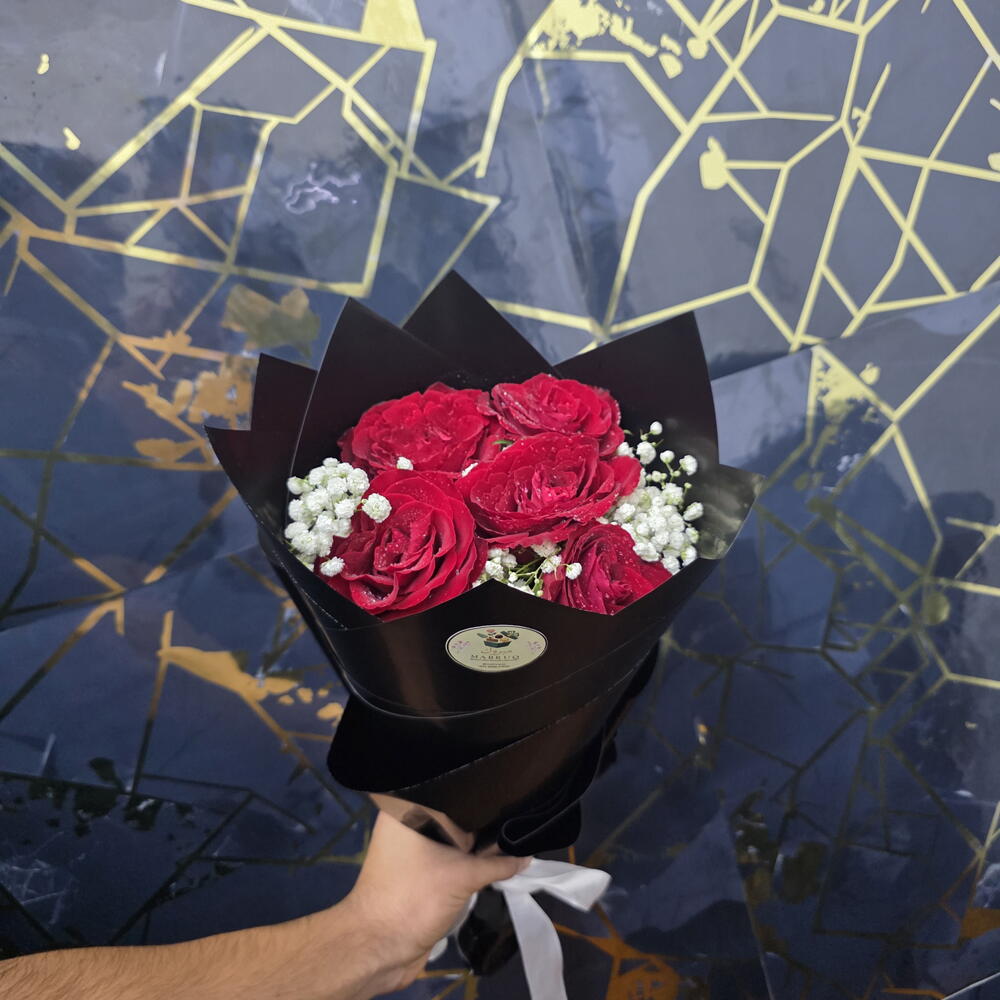 Этот букет включает пять изысканных красных роз, тщательно отобранных за их красоту. Каждый бутон демонстрирует бархатистые лепестки и насыщенный, яркий цвет, символизирующий любовь. Розы искусно расположены, создавая потрясающую визуальную композицию. Это идеальный подарок, чтобы выразить вашу привязанность или признательность. Этот премиальный букет наверняка принесёт радость получателю.