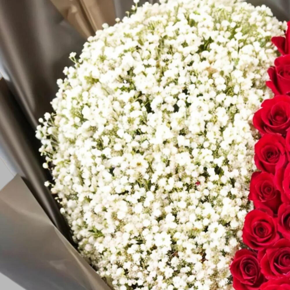 gypsophila white - 30 шт. red roses - 81 шт.
