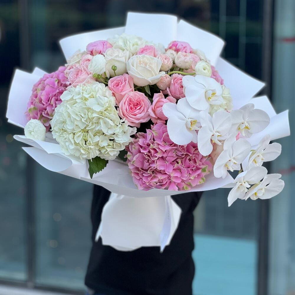 Peony rose - 5 шт. Hydrangea - 5 шт. Peony - 3 шт. phalaenopsis orchid - 1 шт. ohara rose - 7 шт.
