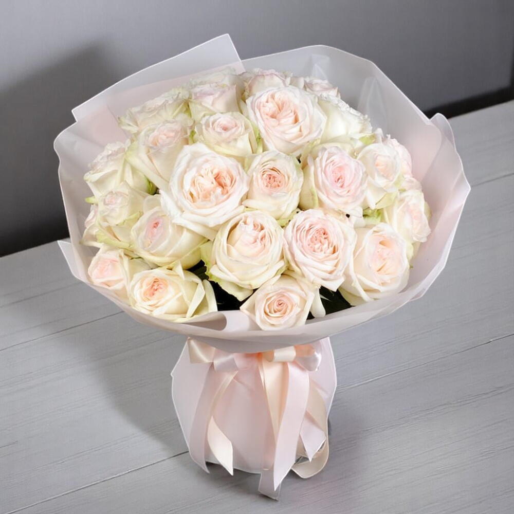 Сладкая симфония – букет из 25 белых роз Охара