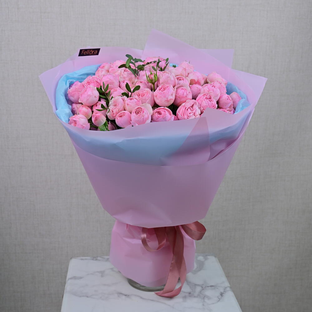 Ощутите вечную красоту нашего букета Mansfield Classic, включающего 25 потрясающих стеблей цветов Mansfield Park в сочетании с 3 изящными стеблями Pistachi. Эта изысканная композиция идеально подходит, чтобы добавить нотку утончённости в любую обстановку, будь то особое событие или повседневная радость. На одном стебле спрей-розы может быть 3 или 4 цветка.