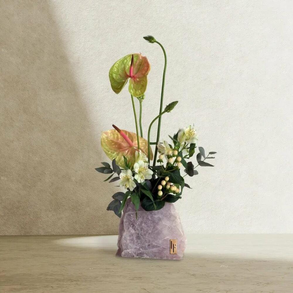 Ornithogalum - 3 шт. Eucalyptus - 1 шт. Alstroemeria - 2 шт. Антуриум - 2 шт. hypericum - 2 шт. розовый кварц - 1 шт.
