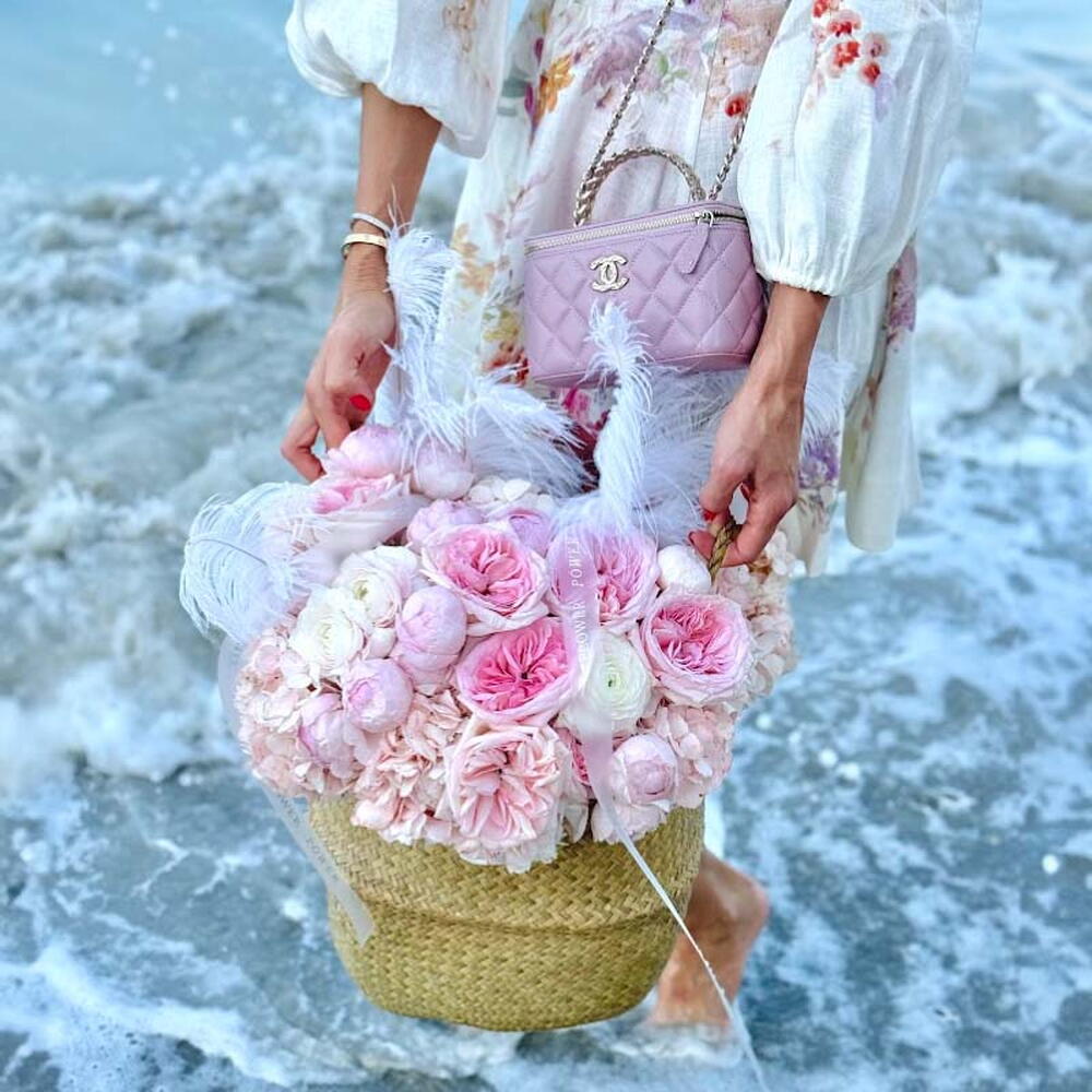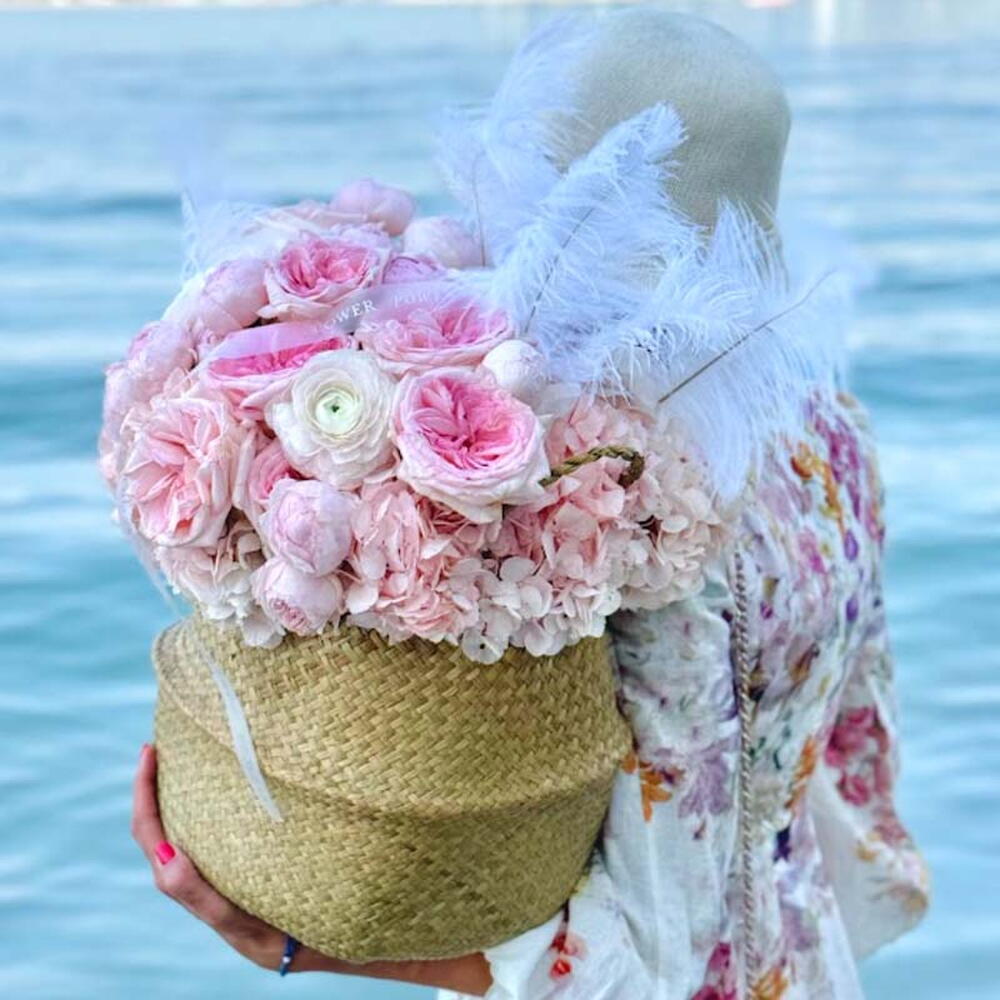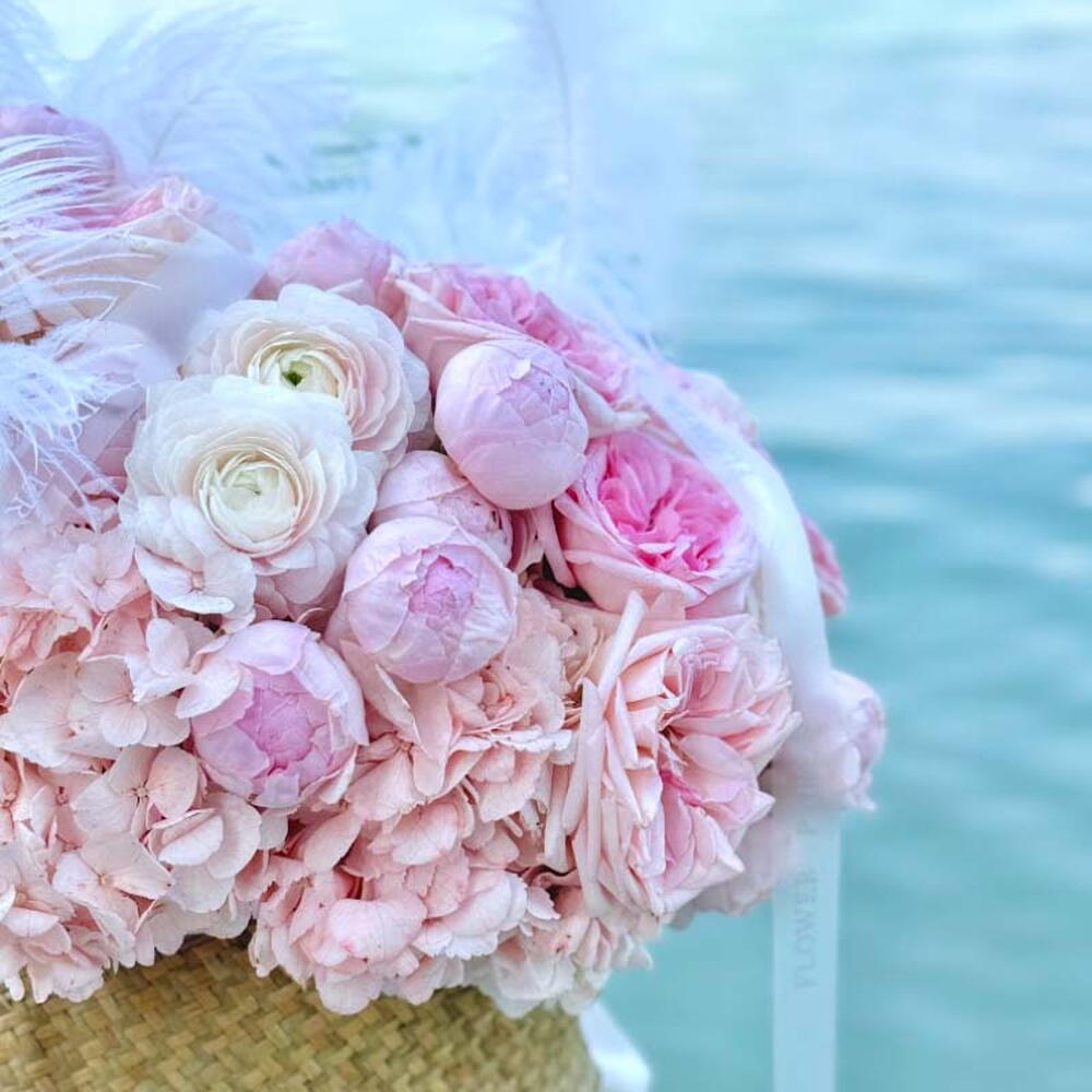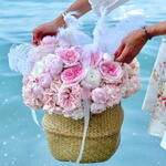 Hydrangea - 5 шт. Basket - 1 шт. ranunculus - 5 шт. rose ohara - 12 шт. роза пион розовый - 6 шт.