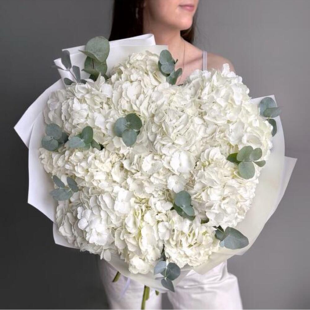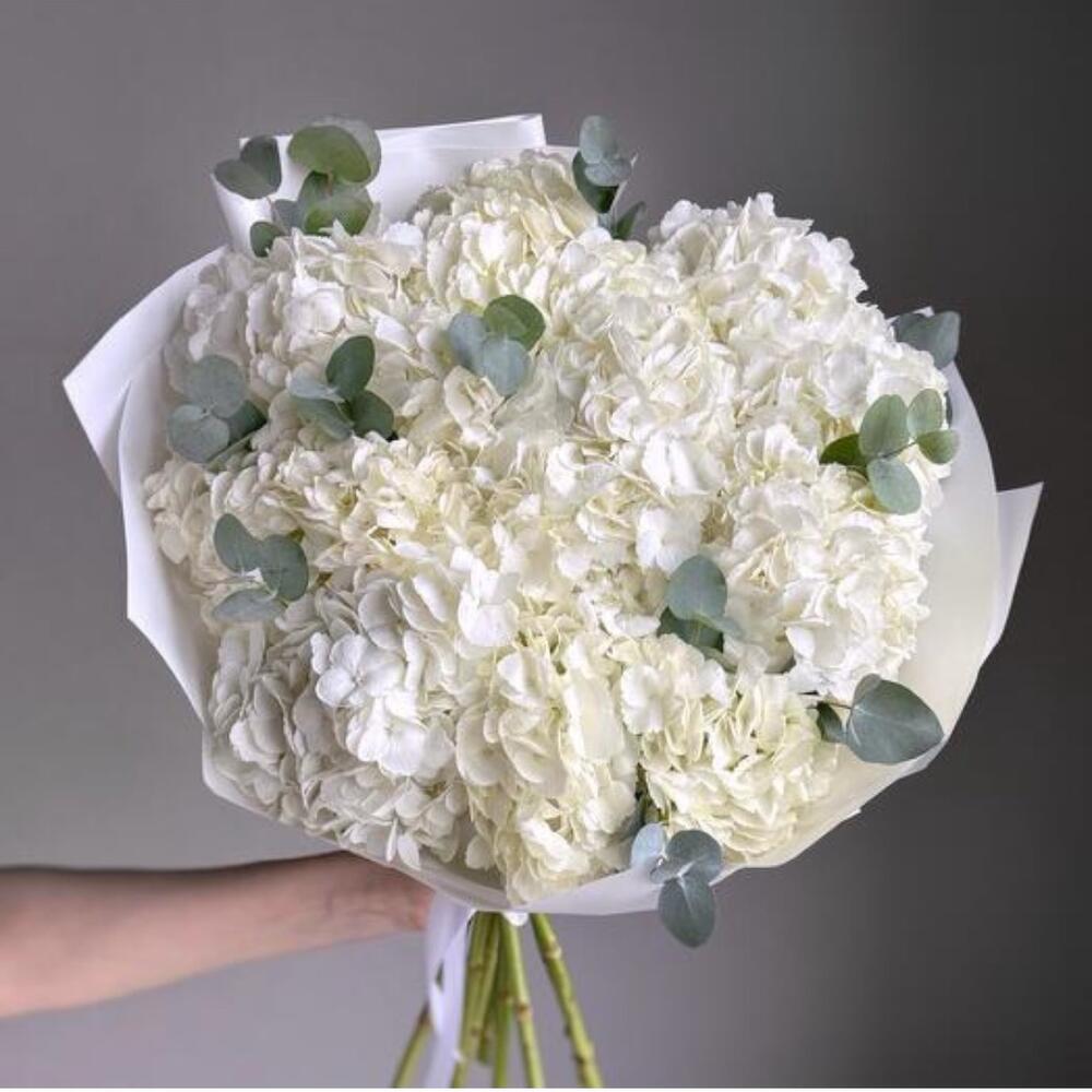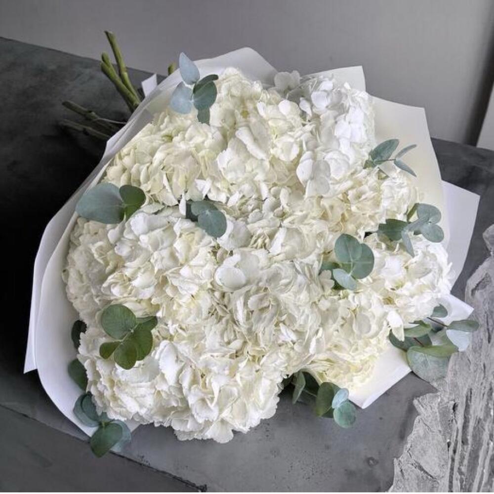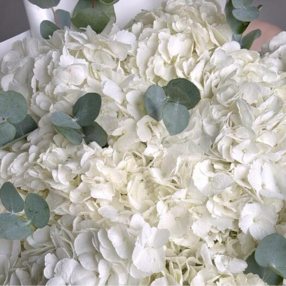 white hydrangea - 15 шт. eucalyptus leaves - 6 шт.