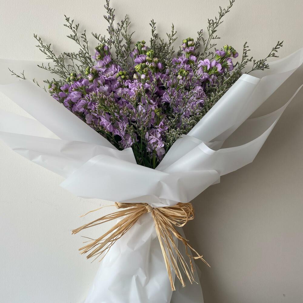 Limonium - 4 шт. matthiola - 15 шт. wrapping paper - 6 шт.