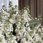 Basket of white matthiola (size L)
