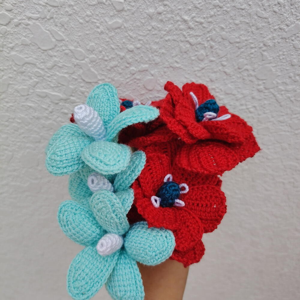 Блаженство луга/ вязаные крючком букеты из анемон и плюмерий