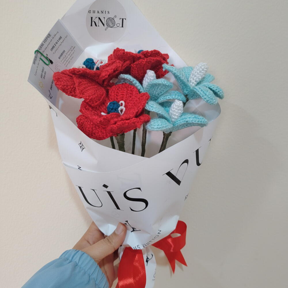 Почему стоит выбрать вязаные букеты? Рекламный слоган Удобный подарок для путешествий: идеально подходит для долгих поездок или неожиданных доставок. В отличие от настоящих цветов, они не завянут в жаркой машине и не прибудут помятыми. Они прочные, долговечные и готовы к своему важному моменту. Убежище без запахов: идеально подходит для больничных палат, офисов или домов с новорожденными. Вы получаете всю визуальную красоту свежего букета без тяжелых запахов или пыльцы, которые могут вызывать аллергию. Экологичный выбор: разорвите порочный круг «купил и выбросил». Это экологичный подарок без отходов, который не попадает в мусор, а остается на полке как прекрасное воспоминание. 2. Премиальные характеристики продукта Гибкие, подвижные стебли: наши цветы не жесткие. Каждый стебель усилен высококачественной флористической проволокой, что позволяет вам распушить букет или отрегулировать высоту, чтобы он подходил к любой вазе в вашем доме. Премиальная пряжа, устойчивая к образованию катышков: Мы используем высококачественную пряжу, которая сохраняет свою хрустящую текстуру и не становится пушистой со временем, гарантируя, что ваш подарок будет выглядеть как новый долгие годы. Профессиональная упаковка в корейском стиле: Мы не просто упаковываем цветы; мы создаем презентацию. Наша многослойная водонепроницаемая бумажная упаковка добавляет объем и ощущение роскоши бутика, что делает распаковку по-настоящему особенной. 3. Маркетинг, ориентированный на конкретный случай На годовщину: Любовь, которая не вянет. Подарите букет, который останется таким же свежим, как в день вашей встречи. На выпускной: Постоянный трофей достижений. Отличный аксессуар для рабочего стола в новом офисе или общежитии. На пожелание скорейшего выздоровления: Идеальный подарок, одобренный больницей. Яркие цвета, чтобы оживить комнату без необходимости ухода или замены воды. 4. Гарантия качества Ghanis Knot В Ghanis Knot мы не занимаемся массовым производством. Каждый букет – это результат многочасовой кропотливой работы. Покупая у нас, вы поддерживаете ремесло, в котором качество ценится выше количества. Наша фирменная этикетка – это наше обещание шедевра ручной работы.
