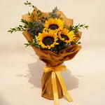 3 подсолнуха 3 пурпурных лимониума 3 гипсофилы 3 эвкалипта В красивой упаковке