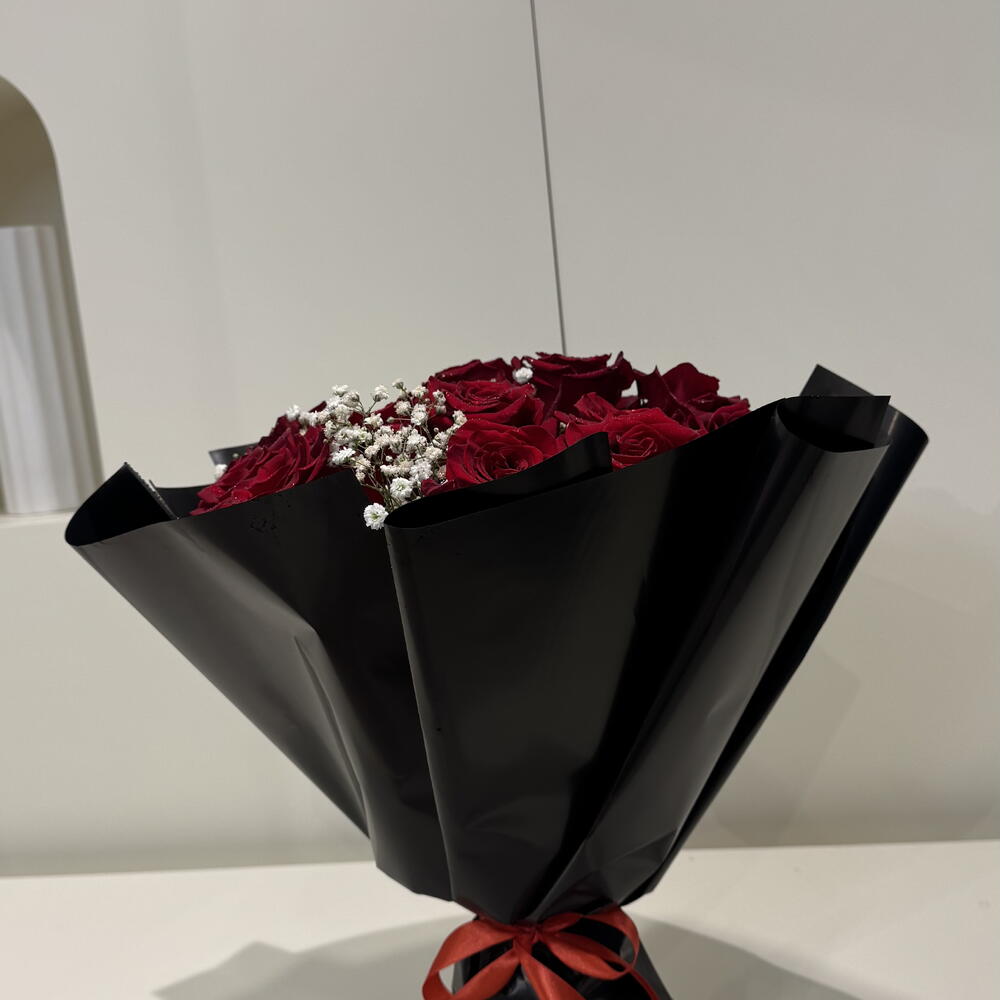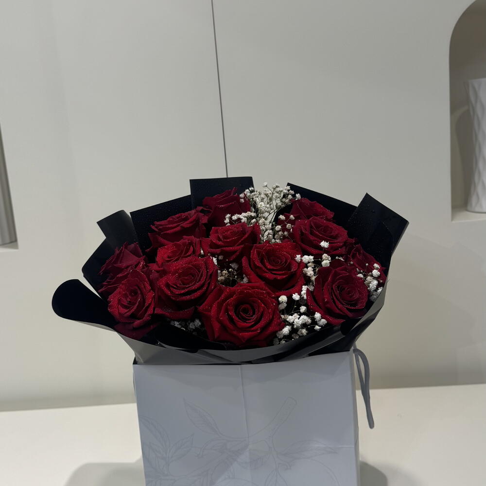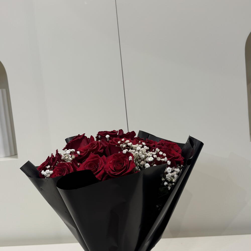 gypsophilia - 3 шт. red roses - 14 шт.