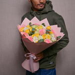 Букет «Милена» – это восхитительное сочетание элегантности и очарования. Он состоит из 5 розовых роз, 5 белых роз, 5 гвоздик, 5 лизиантусов, 5 жёлтых кустовых пионовидных роз и лёгкого эвкалипта. Эта потрясающая композиция сочетает нежные пастельные тона с яркими, создавая букет, излучающий тепло и изысканность, идеально подходящий для любого особого случая или в качестве подарка. В цветочном бутике Fellora мы гарантируем, что каждый букет составлен из самых свежих цветов, чтобы сделать ваши моменты поистине незабываемыми.