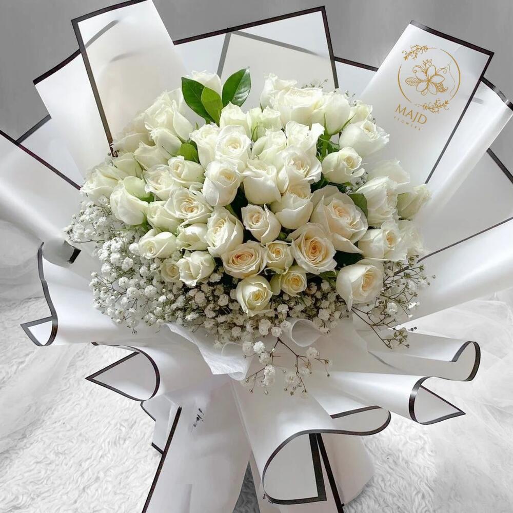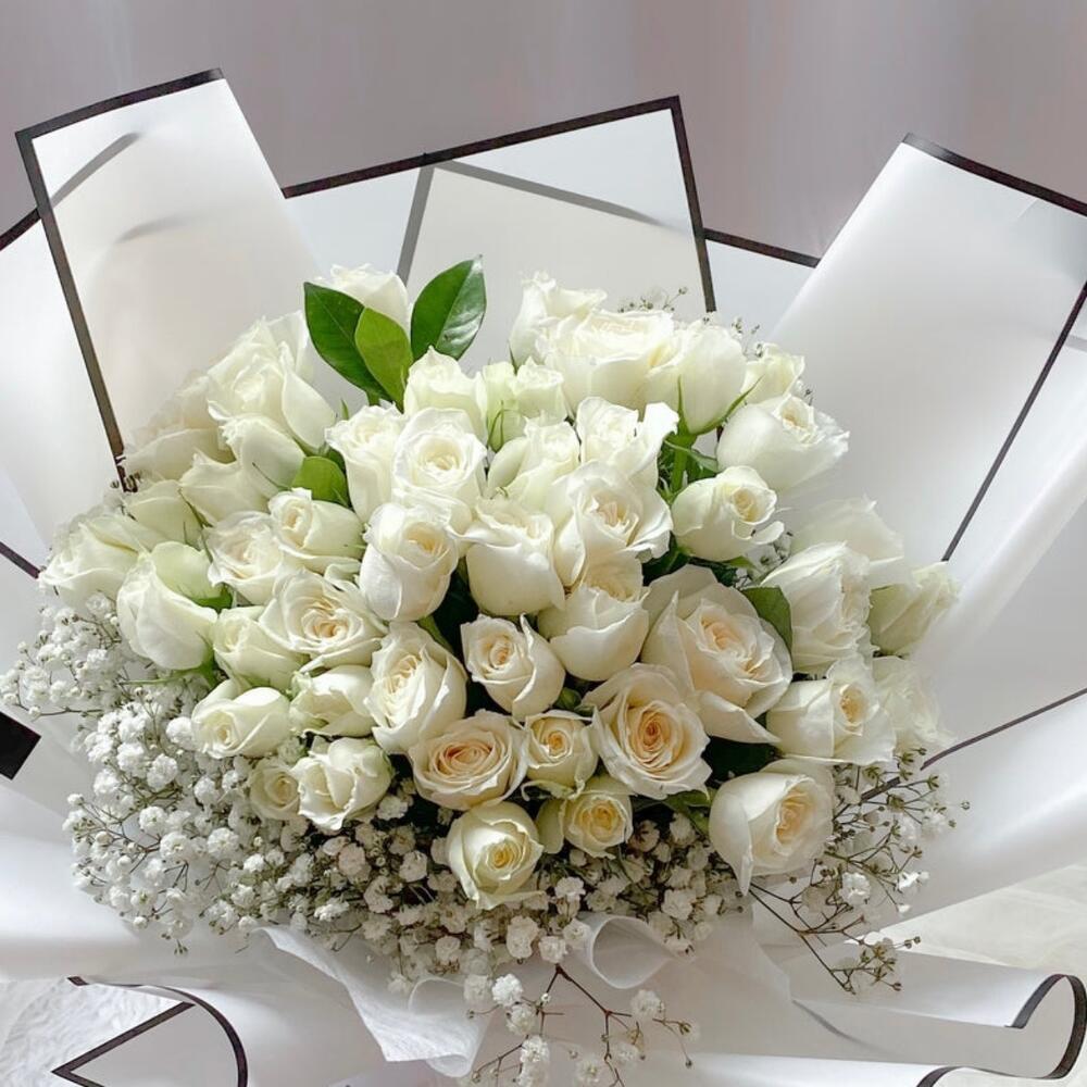 gypsophila white - 8 шт. white roses - 51 шт.