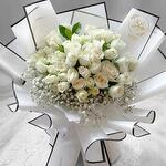 *Этот элегантный и умиротворяющий букет из кремово-белых роз и нежных гипсофил – нежное выражение чистоты, покоя и искренней любви. Идеально подходит для тех нежных моментов, когда слов недостаточно.
