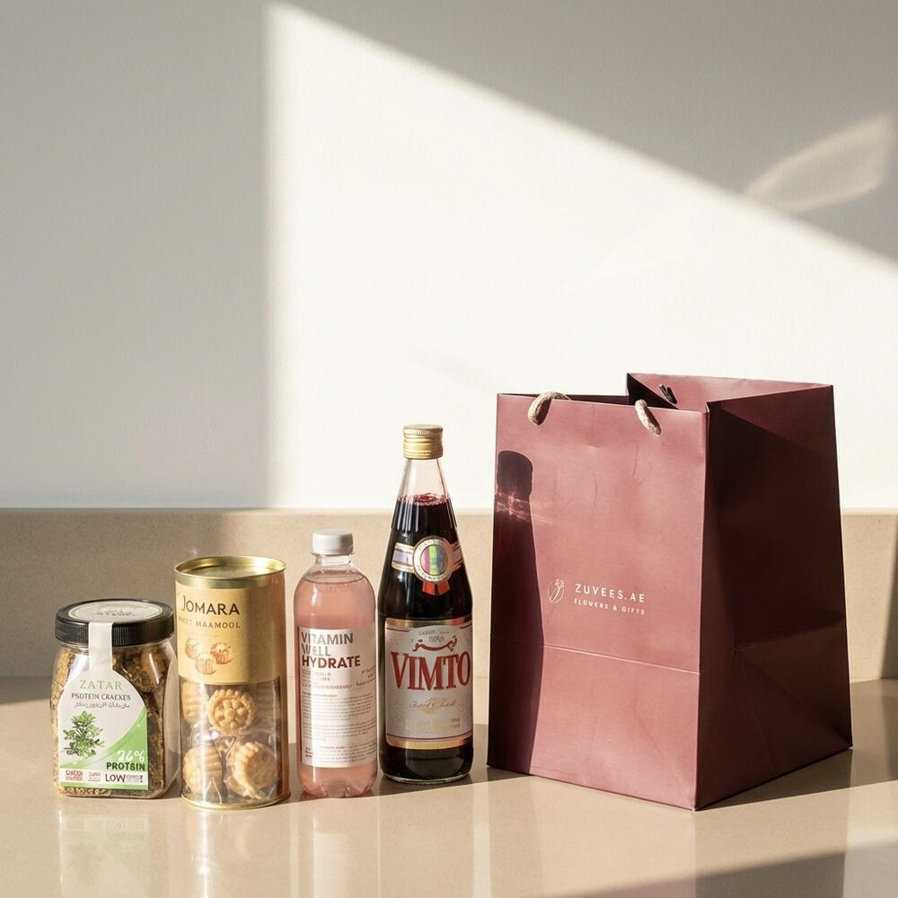Мини-набор для разговения в Рамадан — это компактный, готовый к употреблению набор для удобного и питательного разговения. Включая сбалансированное сочетание освежающих напитков, традиционных сладостей и закусок, этот портативный набор идеально подходит для корпоративных подарков, раздачи в мечетях, офисных команд, студентов и продуманных индивидуальных жестов. Этот практичный набор для ифтара включает классический напиток Vimto, увлажняющий напиток Vitamin Well, пирожные маамуль с финиками Джомара и протеиновые крекеры с заатаром — создавая гармоничное сочетание увлажнения, энергии и вкуса. Идеально подходит для разговения в любом месте, предлагая простой, но значимый способ легко и бережно поделиться духом Рамадана.